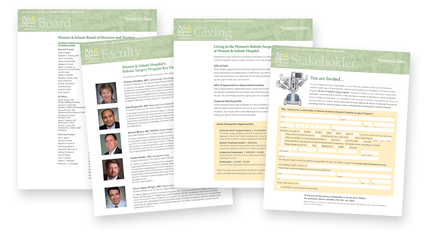 Worked with the philanthropy group to design a multipage brochure and inserts with additional information for fundraising. Distributed at donor events and through mailings.